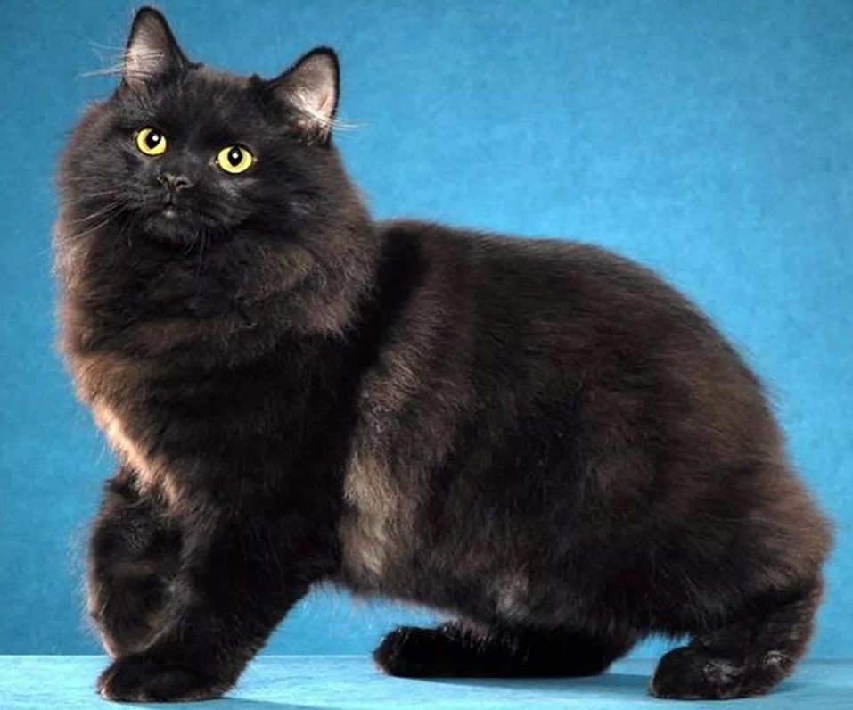 Маленькие черные котята в помёте встречаются также часто, как и в других окрасах, ласковый характер и любовь к детям делают эту породу одну из лучших для детей. Вес при обычном кормлении не превышает 7 кг, могут быть как длинношерстными, так и с короткой шерстью, быстро приучаются гулять на поводке, любят следовать за хозяином по квартире.